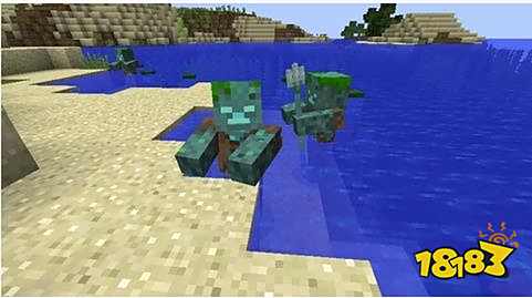 僵尸在被水淹死之后会变成水鬼,生成有一定几率拿着鱼竿,还有三叉戟。需要注意的是,水鬼可以用三叉戟攻击你,它们都可以进行近战攻击,而拥有三叉戟的那些还可以远程攻击。值得注意的是既然它们有三叉戟,那么也就是说你可以在生存中通过击杀它们获得三叉戟哟!