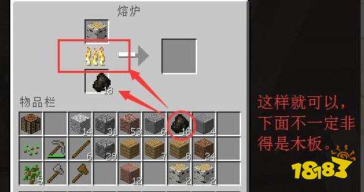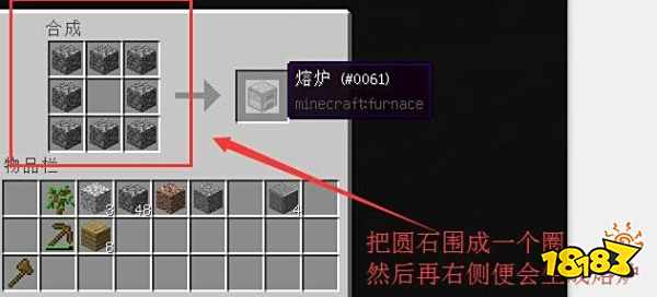在获得原石和木材后,玩家鼠标右键点击放在地上的工作台,进入合成3x3格子,把圆石围成一个圈,旁边便会生成一个熔炉。