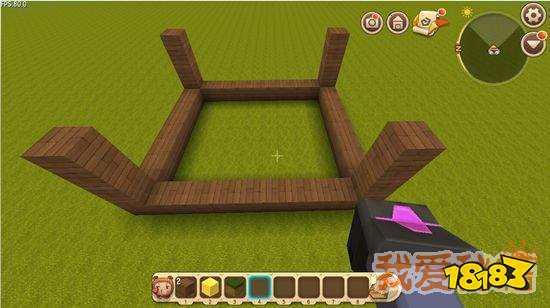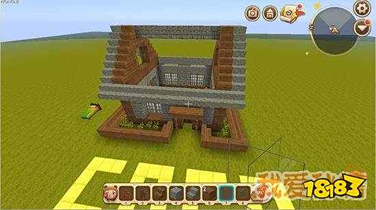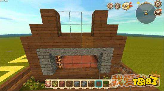 第五步,弄好正门我们来弄屋子左右两边,这里窗户也用楼梯倒放来做窗框。