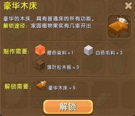 豪华木床=橙色染料X1、白色毛料X3、落叶松木板X3