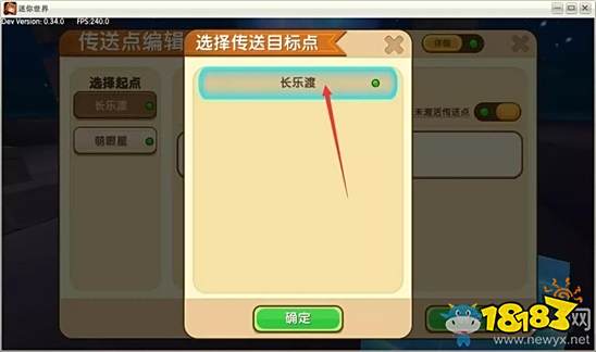 点击我们刚刚放置的“长乐渡”传送点,然后点击确定;