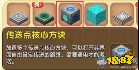 先来介绍下传送点核心方块,作为传送方块组件的核心,传送点核心方块控制着传送点的各种设置。首先,这个传送点核心方块必须通电才能进行工作,我们可以使用电路控制,也可以直接在方块旁放一个电能石。