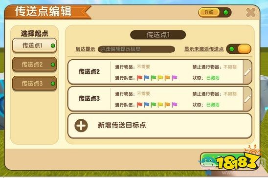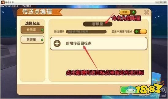 点击这个核心传送方块,我们给第二个传送点命名为萌眼星,并点击下面的新增传送目标点;