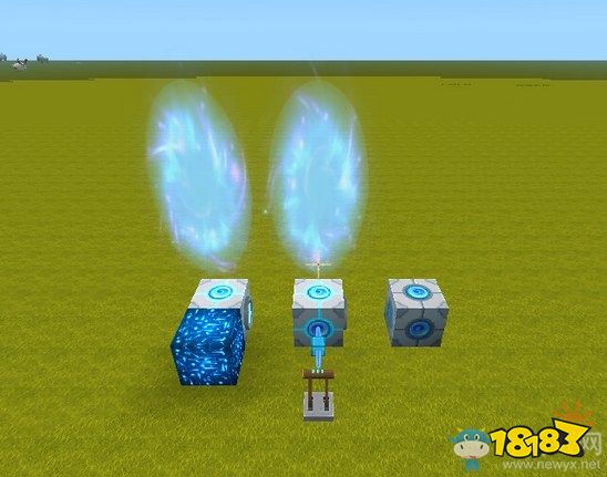 首先我们选择一个合适的地点摆放我们的主角:传送核心方块(注意方块需要通电才可以开启)。 我们已经可以看到核心方块上面已经出现了非常“魔幻”的传送阵了,像这样: