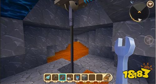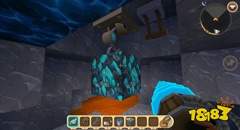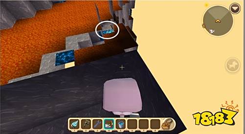 1、通过岩浆中找到蓝钻石。前往地下深处的岩浆层,首先通过切换视角,发现岩浆中有一个钻石。