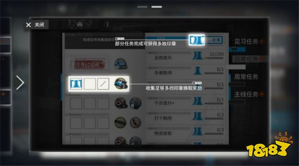见习任务可以理解为是新手时期的引导任务。完成部分任务可以获得数量不等的印章,从而在左边依据现在持有的印章数获得每个阶段性的奖励。