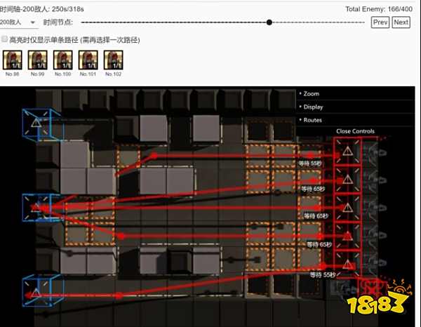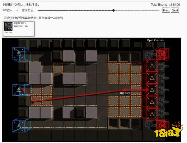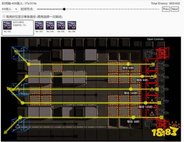 最后399-400为boss+大法术飞机,飞机需要狙击优先处理。boss防御与血量是胖子的两倍,攻击是1.5倍,基本不破防,但是与胖子移动速度、攻击速度、眩晕时间相同意味着可以法术爆发输出或者法术常态输出+工具人/盾+减速解决。在有减速的情况下,一个盾能抗大锤6下(砍3下,减速,醒来再砍3下),加上移动时间一共28s,两个盾+减速则有将近60s的输出时间,即使只有精一40级左右的阿米娅也能过的