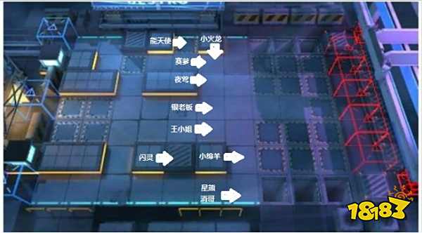 确保火力能覆盖三路,奶能奶到每排最靠右的人,奶应该要纵向放置,由于一起掉血所以可能比较考验群奶的练度。