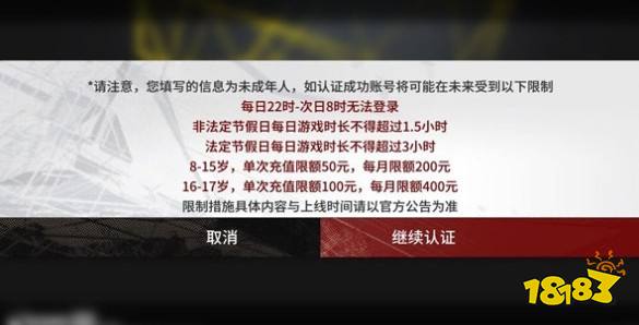 上述账号认证大多都是在进入游戏后自动弹出的,而如果填写的是未成年人信息还会有一道额外的提醒步骤。未成年人在如实认证之后会受到游玩时间和消费额度方面的限制,具体的内容主要包括:
