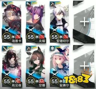 群攻近卫x1(泡普卡);群攻术师x1(炎熔);单体狙击x1(安德切尔);远程近卫x1(月见夜);群攻狙击x1(空爆);单体治疗x1(安赛尔)