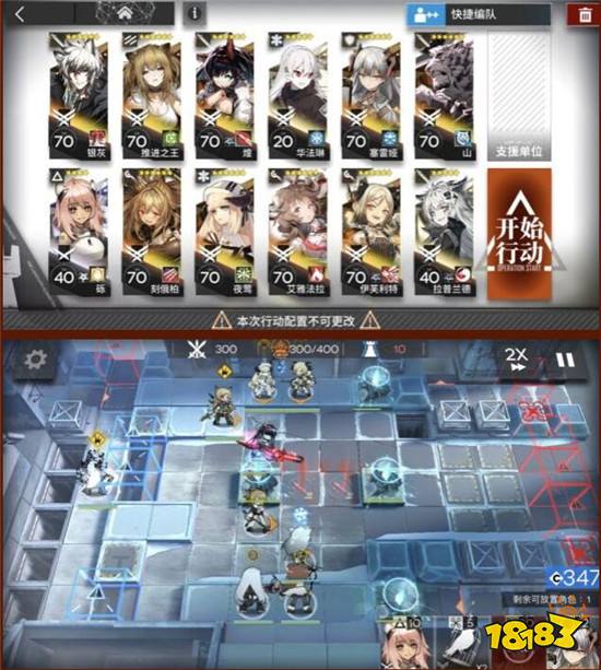 整体练度:银灰和煌专3,其他都没有专精,除了银灰和山应该可以再低一些,因为几乎没有出现有的压力波次。