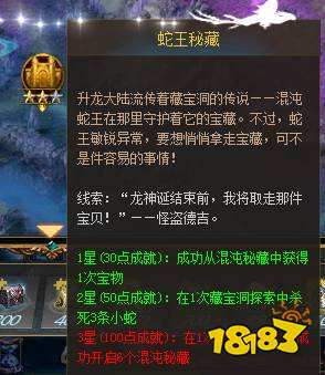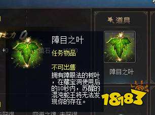 而且,成功营救出富二代,必定可以获得一个道具——障目之叶,作用呢就是使用之后,苏醒的混沌蛇王在10秒钟无法发现你的存在,这个可是开启所有混沌密藏的必备道具呀。