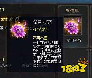 但是呢,在测试中,小编还发现一个问题,那就是先救孩子那边的话,可以获得道具紫荆灵药,暂时呢小编还不知道这个道具具体的用途,介绍说他可以治疗一切蛇毒,可能和其他事件有关联,需要继续探索。