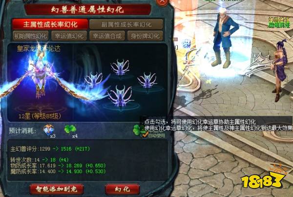 如果你点击确定,那么幻化幸运草就会消耗,同时幻化仪式中主幻兽获得的成长率将达到副幻兽所提供的最大值。