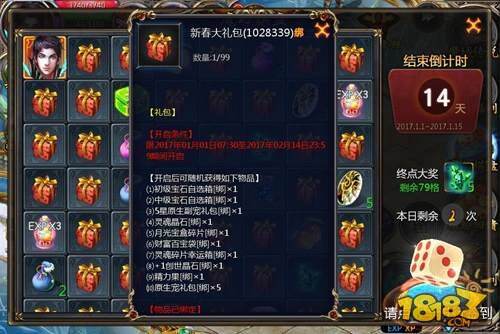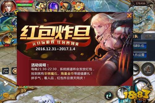 活动内容:12月31日-1月4日每晚21:30-22:30,活动期间系统频道将会免费发放红包,内含非绑魔石、海量金币等豪华大礼,先到先得!