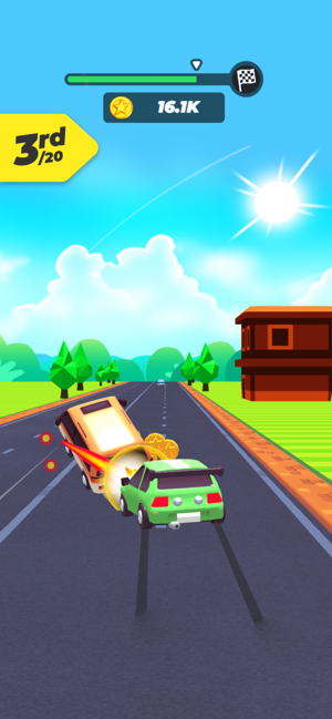 将对手撞出赛道即可获得硬币用来购买更多赛车