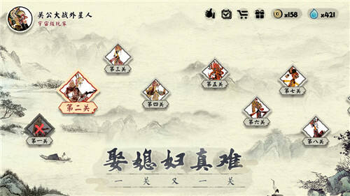 古风国画用作背景,引入古典皮影戏元素,一路上赏心悦目