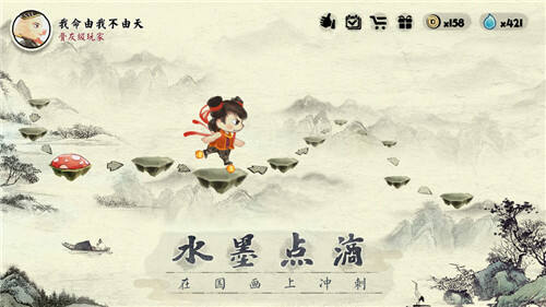 水墨风是富有中国特色元素的风格,给人一种舒适、舒服的感觉,创意还是不错的,毕竟是休闲跑酷小游戏。