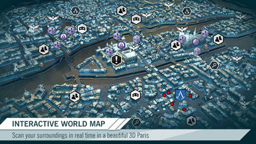 游戏还通过全新的引擎将整个巴黎城呈现在玩家面前,而玩家可以通过该应用浏览全3D 的巴黎地图,并通过螺旋标记来规划任务从而更方便的定位自己、同伴和敌人的位置,并实时的查看地图的更新,此外该应用还提供了详细的提供社区热点地图以显示每个任务中其他玩家所采取的行进路线,包括他们所面对的敌人,从而能让自己规划出一条更好的任务线路。