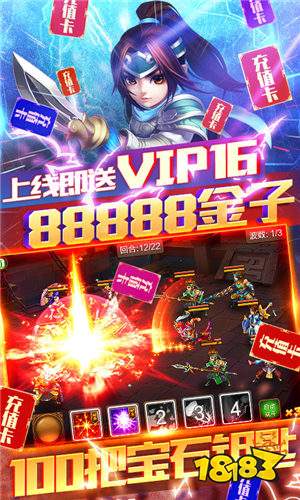 4.充值比例1:1000,首充双倍返利,首充即送四星神将吕布,红色装备,以及其他稀有道具,机会只有一次。