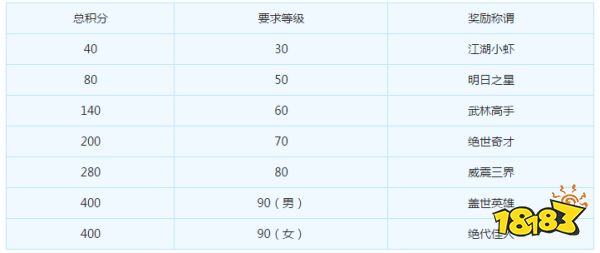 此外,玩家在历届比武大会中累计获得一定积分后,还将得到永久保留的特殊称谓: