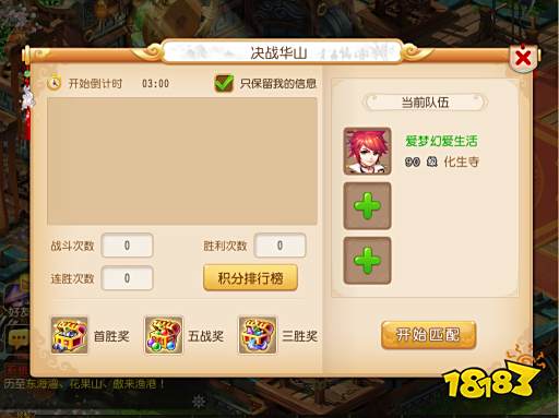 5. 在决战华山活动中每次战斗结束后自动补满气血魔法,人物和宠物死亡没有损失。