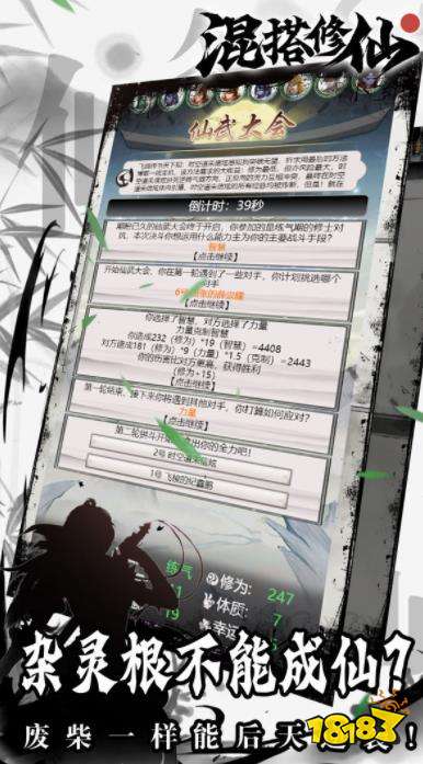 混搭修仙最新版是一款文字修仙,比拼吃鸡的游戏,每一段仙途都有八个人同时修仙,但是只有一名玩家能够成功的飞升,一局五分钟,能够自我修炼,能够通过挑战来获得修为,你是真正的神仙体质吗。