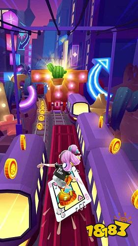 地铁跑酷画面上绚丽精致,色彩繁多却让人很舒服,而在操作上非常顺畅,并且干净利落。游戏中通过简单的向上划,向下划,向左向右划来躲避障碍和迎面而来的火车,并且在空中也可以左右改变方向,还可以通过双击屏幕调出滑板,在有限的时间里相当于增加一次生命。