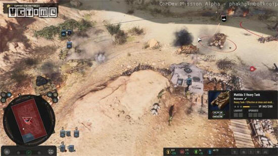 2、作战单位方面,玩家可以指挥各种步兵小队和战车。开场时玩家就拥有两辆经典的德国“三号坦克”,而英军的马蒂达II型坦克也会在游戏前期登场。