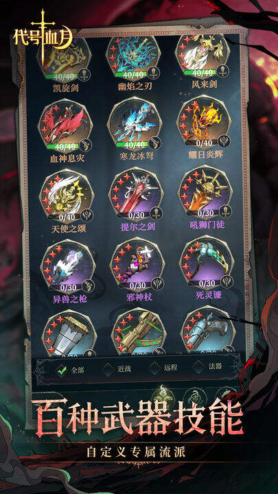 3、武器种类繁多玩家可以自行进行搭配,更有多种流派等着你来定制,称霸这片大陆。