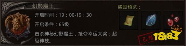 具体玩法:活动持续时间为半小时,每5分钟刷新一次,期间会有很多幻影魔王给玩家攻击,其中只有1只魔王是真魔王,死亡后归属者将获得归属宝箱,到下一轮后会通过邮件给予玩家奖励;开启宝箱后可以获得技能书页,金刚石,火龙碎片等。