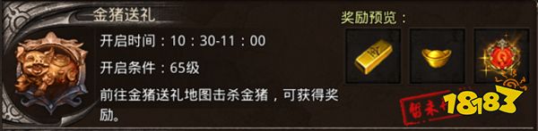 具体玩法:金猪一共有6波,每波都有大量金猪,击杀获取大量元宝,最后一波会有大量稀有金猪,击杀概率掉落上古经验珠。