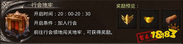 具体玩法:本行会成员参与击杀BOSS,击杀后前往下一层,层数越高,奖励越好。