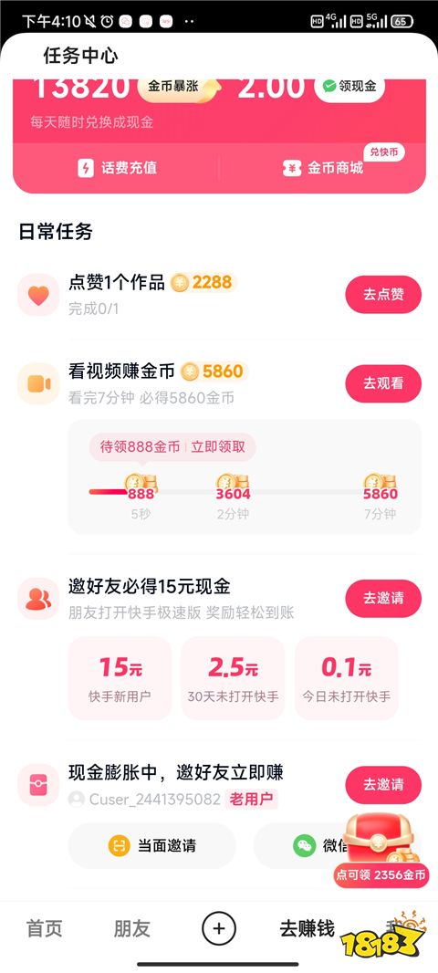快手极速版官方正版App怎么升级暴赚金币教程