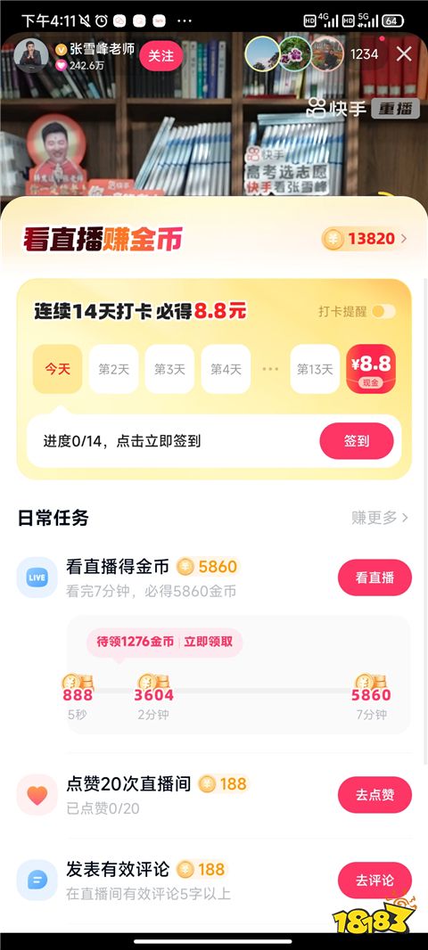 进入直播间观看,适当发言互动,停留足够时间,也能获得金币奖励。