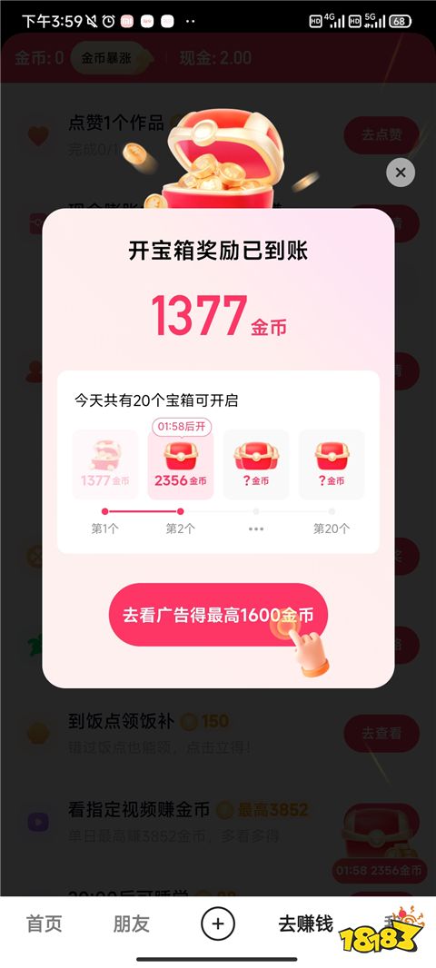 很多金币任务(如开宝箱后、完成任务后)会提供"看广告得更多金币"的选项,看完广告能获得显著更高的金币奖励。这是主要金币来源之一。