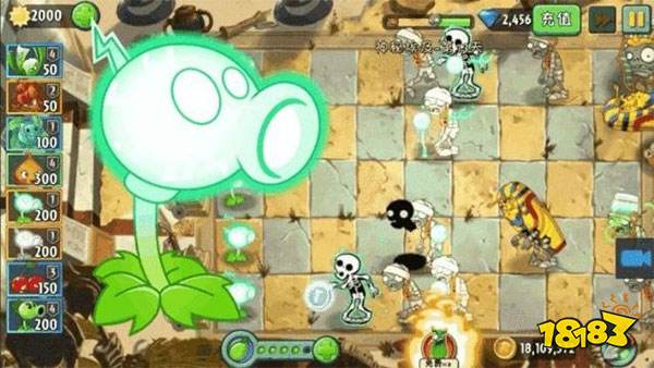 不得不说,豌豆射手系列在游戏里一直占据着半壁江山,它们的地位在玩家心目中还是很高的。这里要说的是电能豌豆射手,它会发射充能豌豆,穿透一整排每一个僵尸,同时还会造成范围伤害,释放大招就更厉害了,超大的豌豆直接爆死僵尸,尸骨无存。所以,它是一个不可多得的神器。