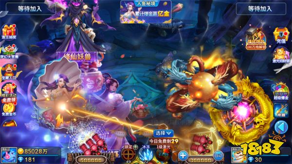 不同炮灵带有不同技能,如申公豹可捕积分鱼充能,攻击全场鱼。