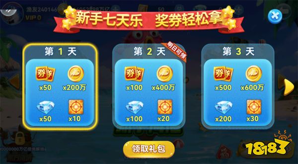 新手玩家前七天每日都可领取礼包,涵盖钻石、金币等奖励。
