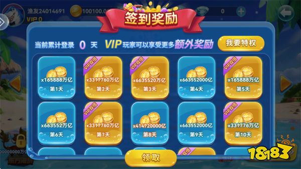 每日签到都可领取大量金币,VIP玩家还可以享受双倍金币福利。