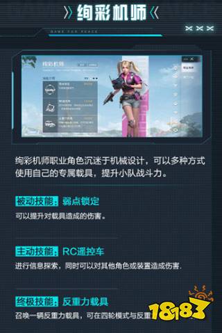 绚彩机师职业角色沉迷于机械设计,可以多种方式使用自己的专属载具,提升小队战斗力。