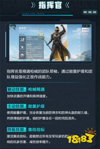 指挥官介绍指挥官是精通枪械的团队领袖,通过能量护盾和团队增益强化正面作战能力。