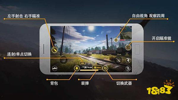 小地图显示区域,点击小地图可以查看放大版的小地图。 右上角为“设置”,点击可以呼出设置界面,进行操作模式的选择等。 右下角为“奔跑”,点击进入奔跑状态,但新的移动,射击,下蹲等操作会打断这个奔跑状态。 奔跑状态用于玩家需要长距离奔跑时,便有玩家操作。