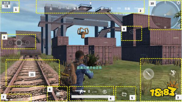 小地图显示区域,点击小地图可以查看放大版的小地图。 右上角为“设置”,点击可以呼出设置界面,进行操作模式的选择等。 右下角为“奔跑”,点击进入奔跑状态,但新的移动,射击,下蹲等操作会打断这个奔跑状态。 奔跑状态用于玩家需要长距离奔跑时,便有玩家操作。