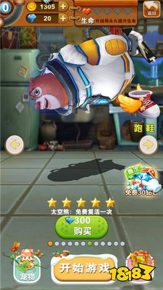 特色:游戏中的太空熊穿着一身航空服,看起来非常高端洋气,太空熊的特殊技能就是拥有它就等于多出来了一次生命,很是爽快。