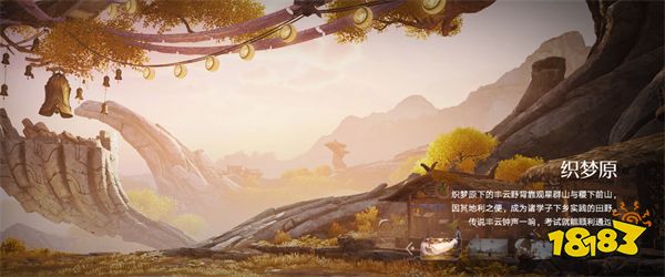 背靠群山的丰云野里,巨型枯木、茅草屋与风铃错落,暖光笼罩下的田园充满治愈气息,传说丰云钟声能保佑考试顺利。