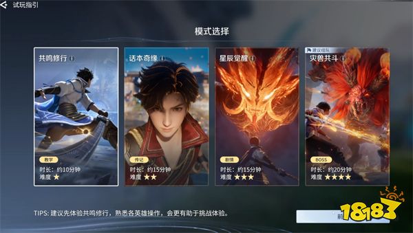 包含教学向的共鸣修行、剧情向的话本奇缘与星辰觉醒,以及组队挑战向的灾兽共斗四类玩法。优先通关「共鸣修行」熟悉操作,再按 “话本奇缘→星辰觉醒→灾兽共斗” 的顺序体验。