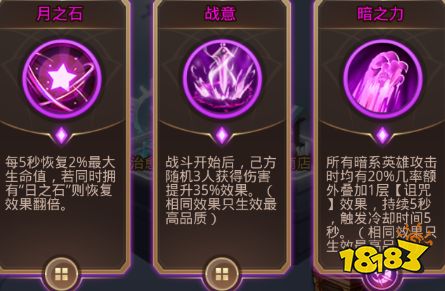 2、若选择阵容一,可以选刺法类和暗系buff,因为是纯暗队且法师偏多,还有凯特琳这样的刺客进行输出。