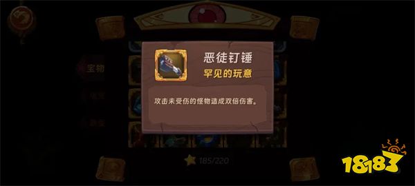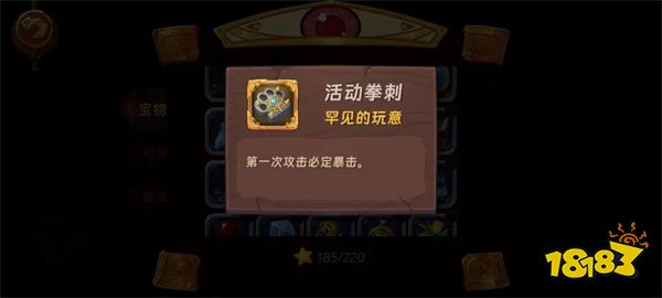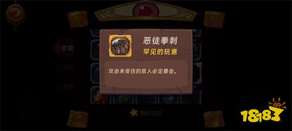 活动拳刺,恶徒拳刺,恶徒钉锤,看宝物描述就知道效果,适用于中期速刷1-1刷资源,可以用希尔进去配合宝物一个技能清屏,后期出门几千攻击力就不需要这个增幅了。