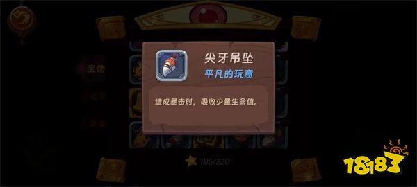 生命汲取,这是很不错且稀有的属性。 前期没有龋齿的时候可以使用小红帽的初始宝物尖牙吊坠,缺点是需要暴击。